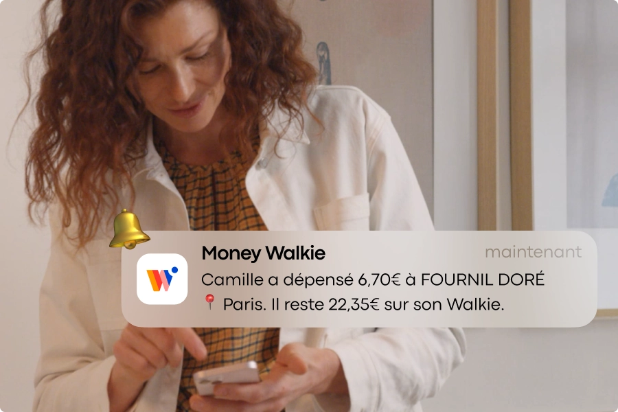 Votre enfant est autonome et gère son argent de poche comme un grand. Et vous restez aux commandes ! Rechargez, bloquez le Walkie, limitez les dépenses et recevez une notification après chaque achat.